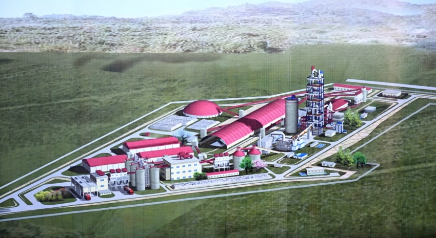 Азамат Осмонов, полномочный представитель президента в Чуйской области, сообщил Жапарову о том, что завод будет иметь проектную мощность в 3200 тонн клинкера в сутки.