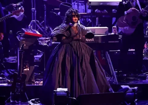 К ней присоединилась женская группа Katseye, которая представила свой вирусный хит Gnarly, и инди-исполнитель Sombr, который появился в сверкающем комбинезоне для исполнения песни 12 to 12.