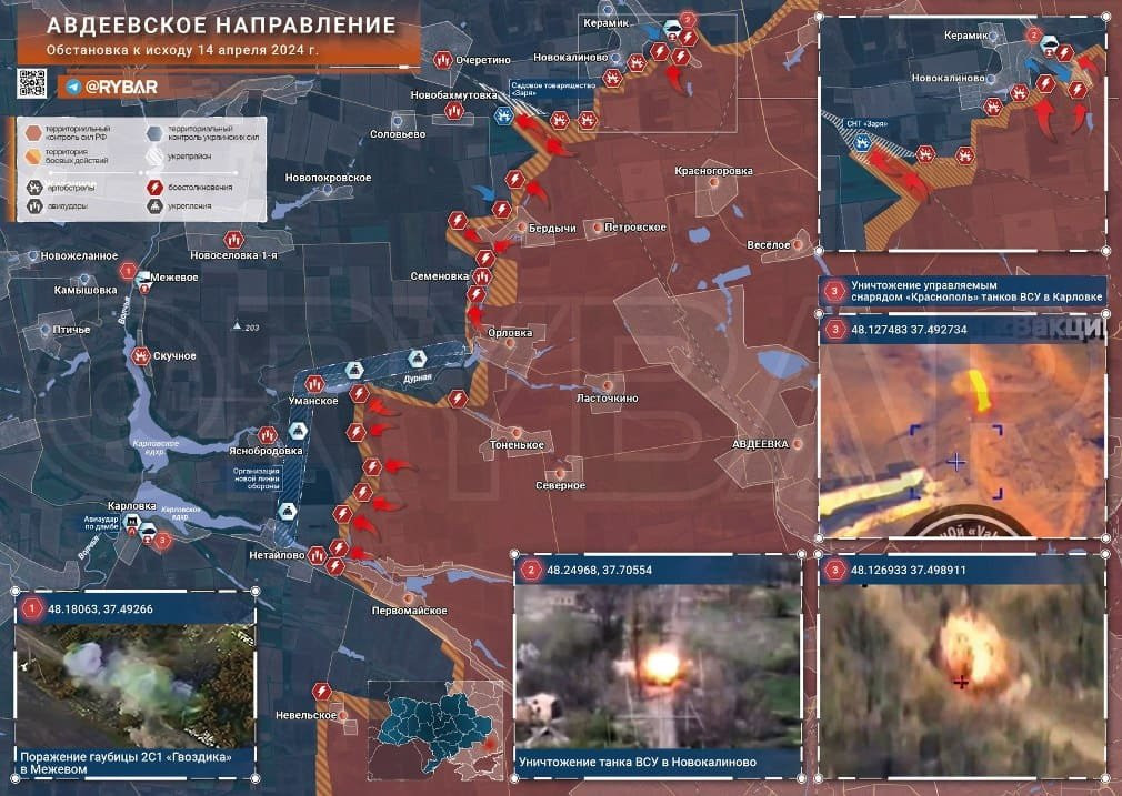 Ситуация под Авдеевкой на сегодня. Карта боевых действий от 15 апреля 2024 года