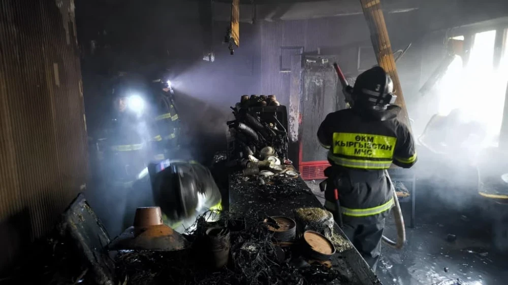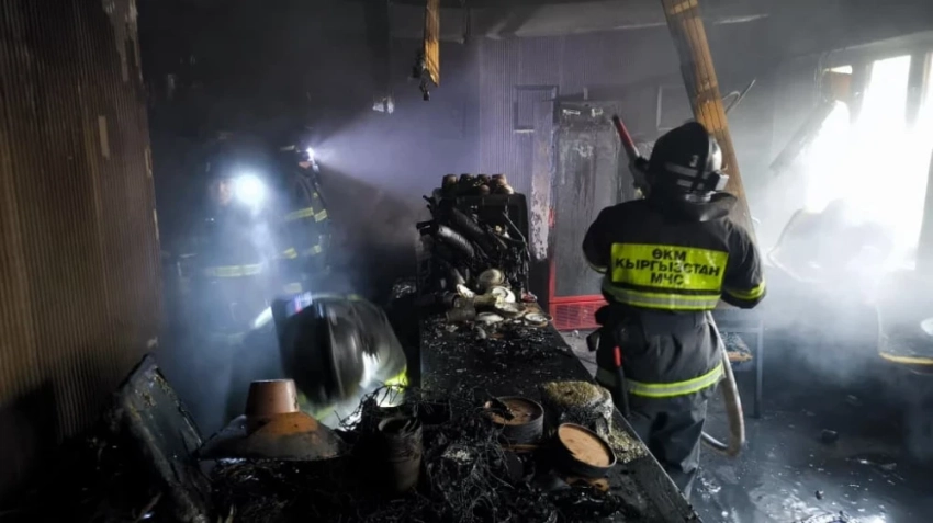 Предположительно, возгорание началось в кафе "3 комнаты", расположенном на проспекте Эркиндик между улицами Московская и Токтогул. Пожар затронул подвальное помещение и первый этаж соседнего жилого здания.