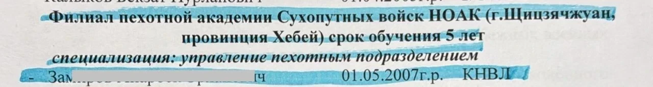 В ходе проверки стало известно, что один из выпускников Национального военного лицея, З.А.Э., по итогам общереспубликанского тестирования (ОРТ) в 2024 году набрал всего 108 баллов, что не соответствовало необходимым требованиям для поступления. Однако в документах, подготовленных для зачисления, его результаты были искусственно завышены до 129 баллов, что и позволило ему поступить в ВВУЗ.