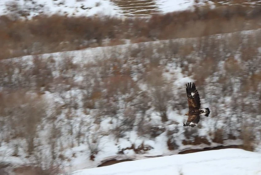 После тщательного осмотра беркута, специалисты удостоверились в его здоровье и выпустили его на свободу.