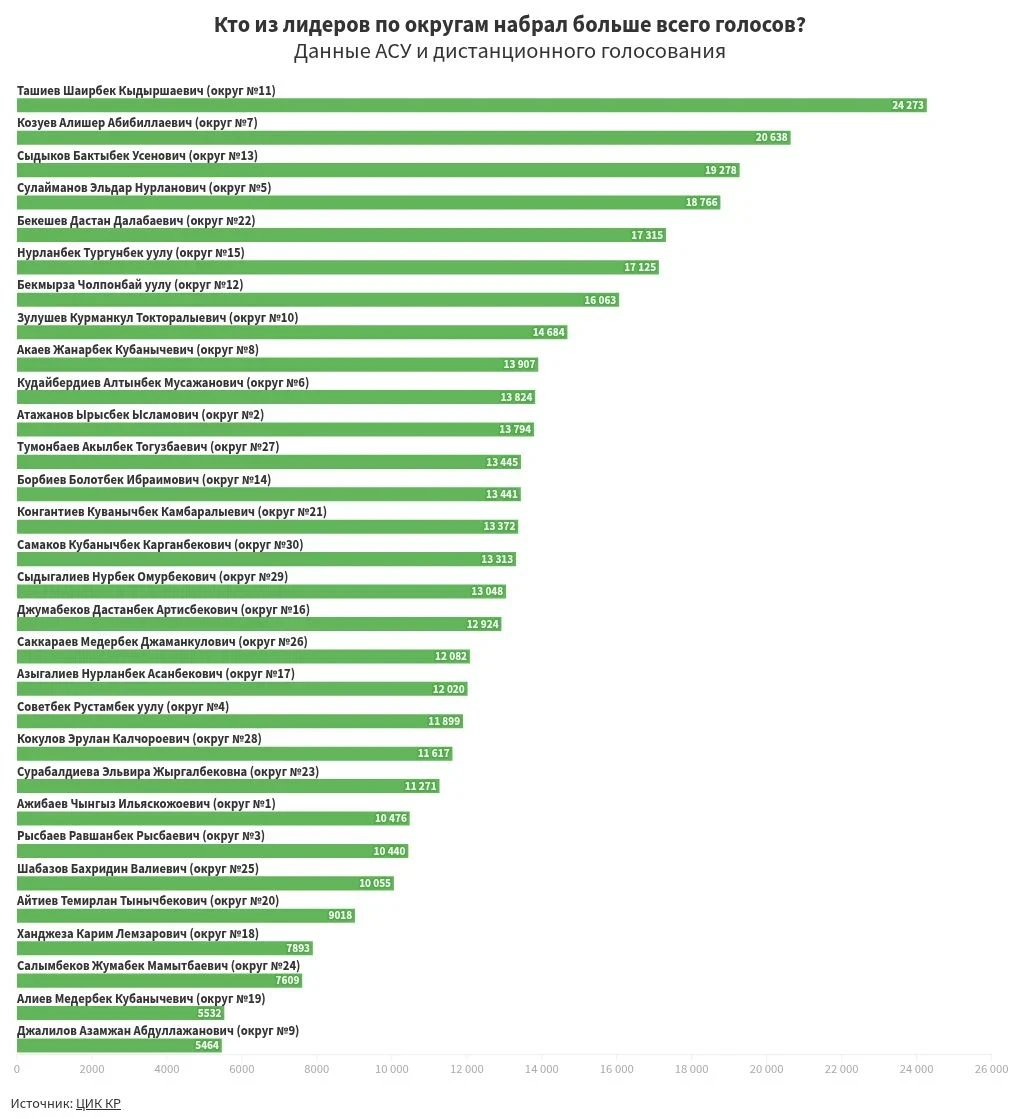 Больше всего избирателей проголосовали за кандидата Шаирбека Ташиева. Рейтинг лидеров