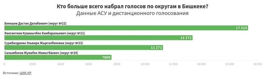Результаты по избирательным округам в Бишкеке представлены ниже: