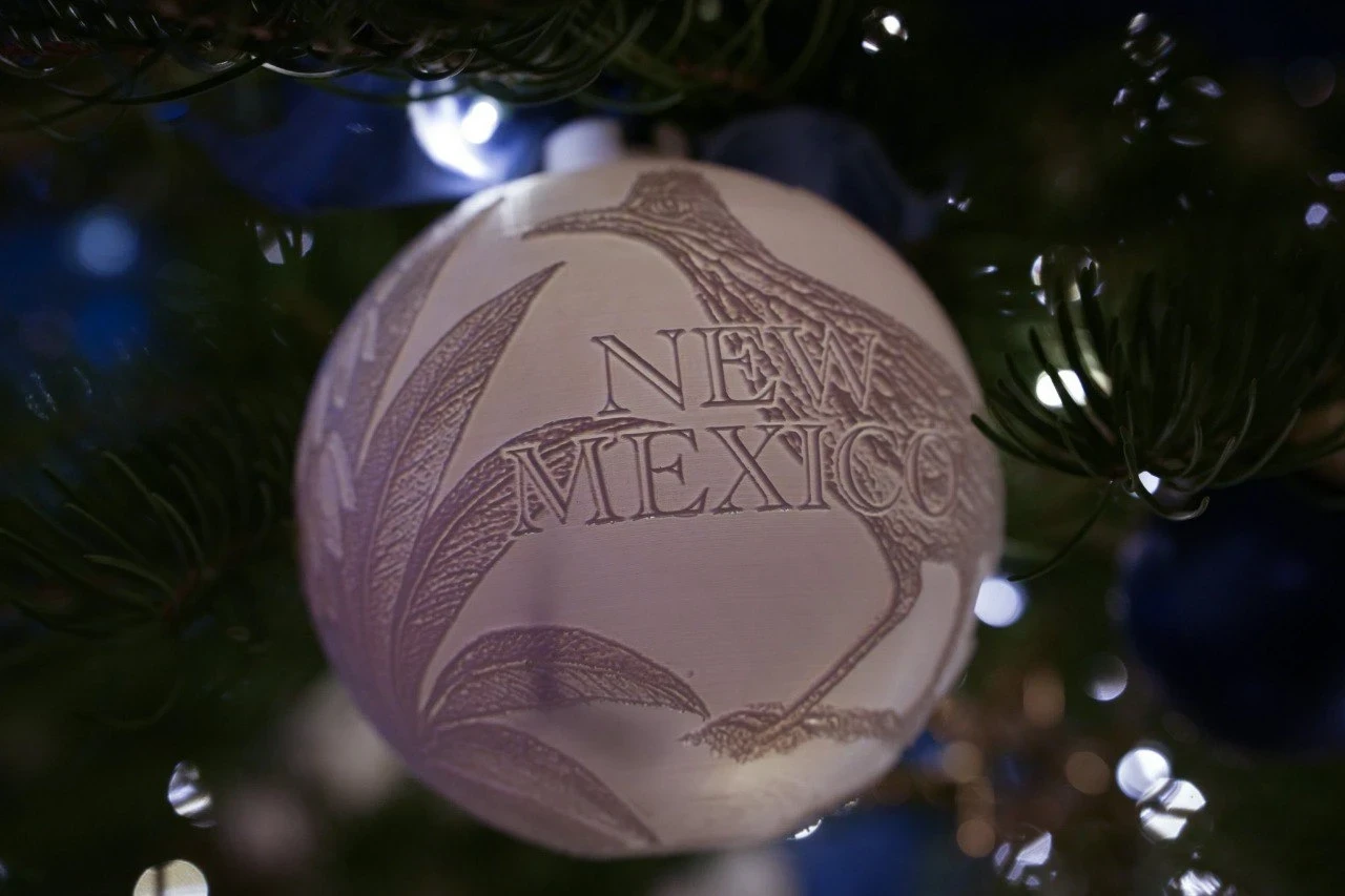 Главная рождественская елка в Голубой комнате украшена золотыми звездами в память о семьях, потерявших своих близких на службе. Эта традиционная елка символизирует каждое государство и территорию, в этом году на ней представлены изображения официальных птиц и цветов всех штатов.