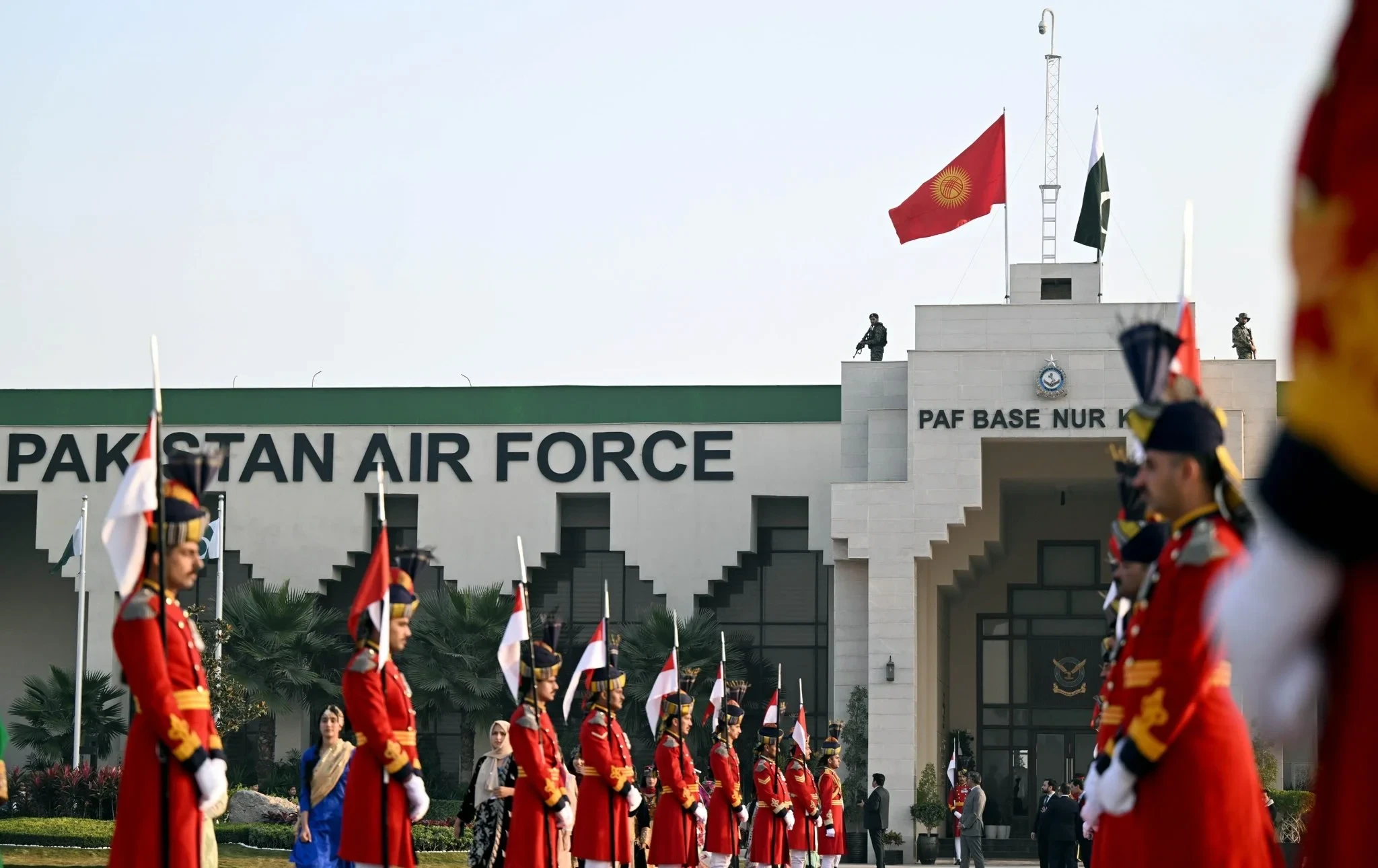 В честь прибытия кыргызского лидера был дан 21 пушечный залп, что является высшей формой церемониальных почестей для глав государств.