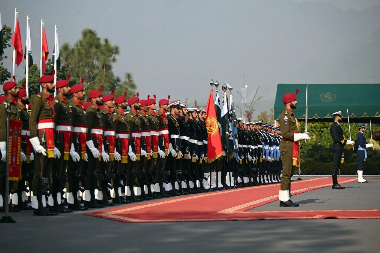 На встрече премьер-министр Пакистана Шахбаз Шариф тепло встретил президента Жапарова. После обмена приветствиями военный оркестр исполнил гимны обеих стран — Кыргызстана и Пакистана.