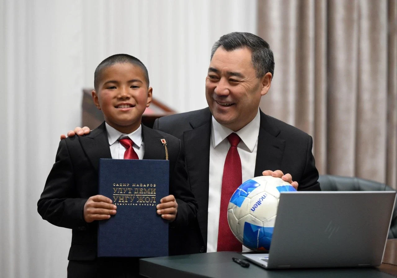 Садыр Жапаров не только пригласил Нурзамана на президентскую елку, но также вручил ему подарки — ноутбук и футбольный мяч. Узнав, что у мальчика нет телефона, он передал ему свой смартфон.