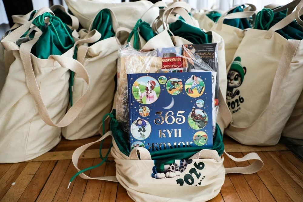 Специально для детей было подготовлено театрально-музыкальное представление под названием "Город профессий", организованное воспитанниками детских танцевальных коллективов. В конце мероприятия от имени президента Садыра Жапарова детям были вручены подарки.
