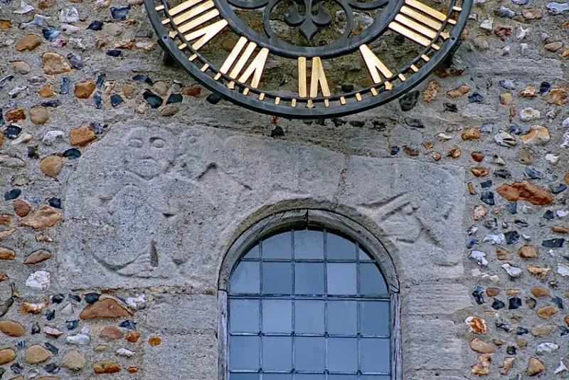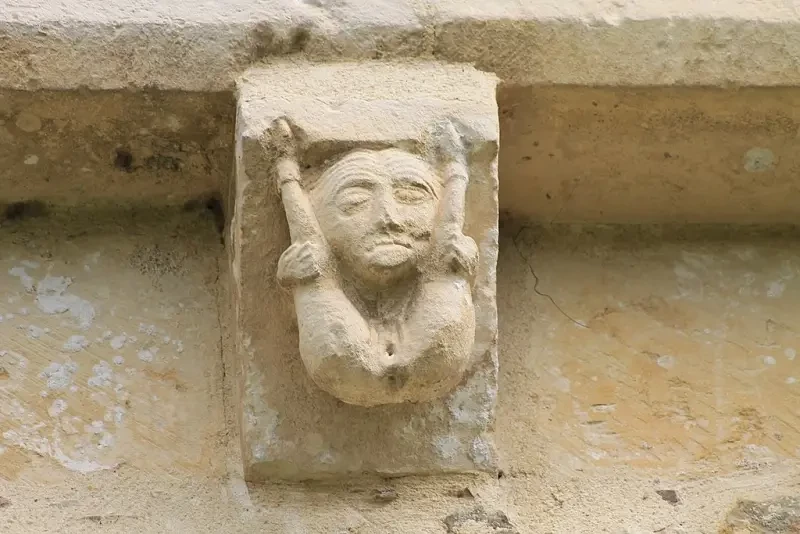 Шила-на-гиг. Клиншам-сюр-Орн, церковь Нотр-Дам, департамент Кальвадос в регионе Нормандия, Франция