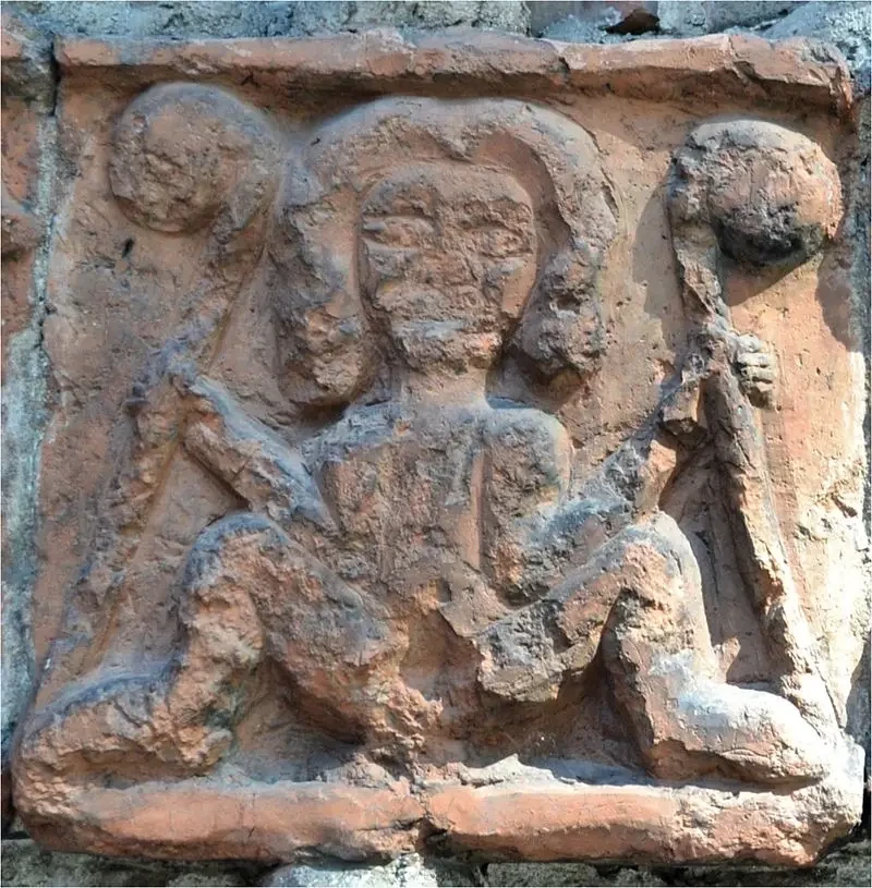 Женщина, бреющая лобковые волосы. Рельеф XII века, в настоящее время находящийся в Музее античного искусства в замке Сфорца в Милане