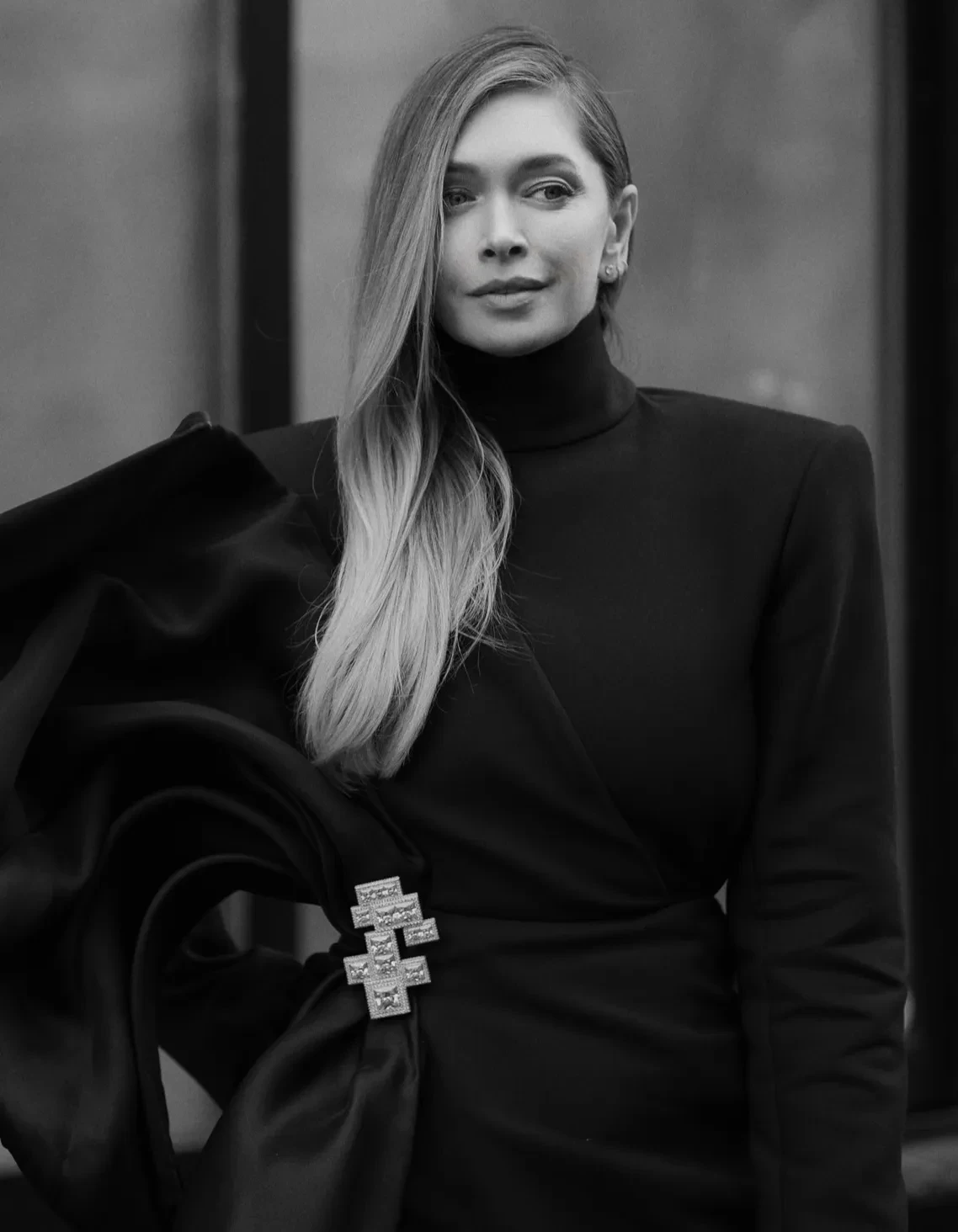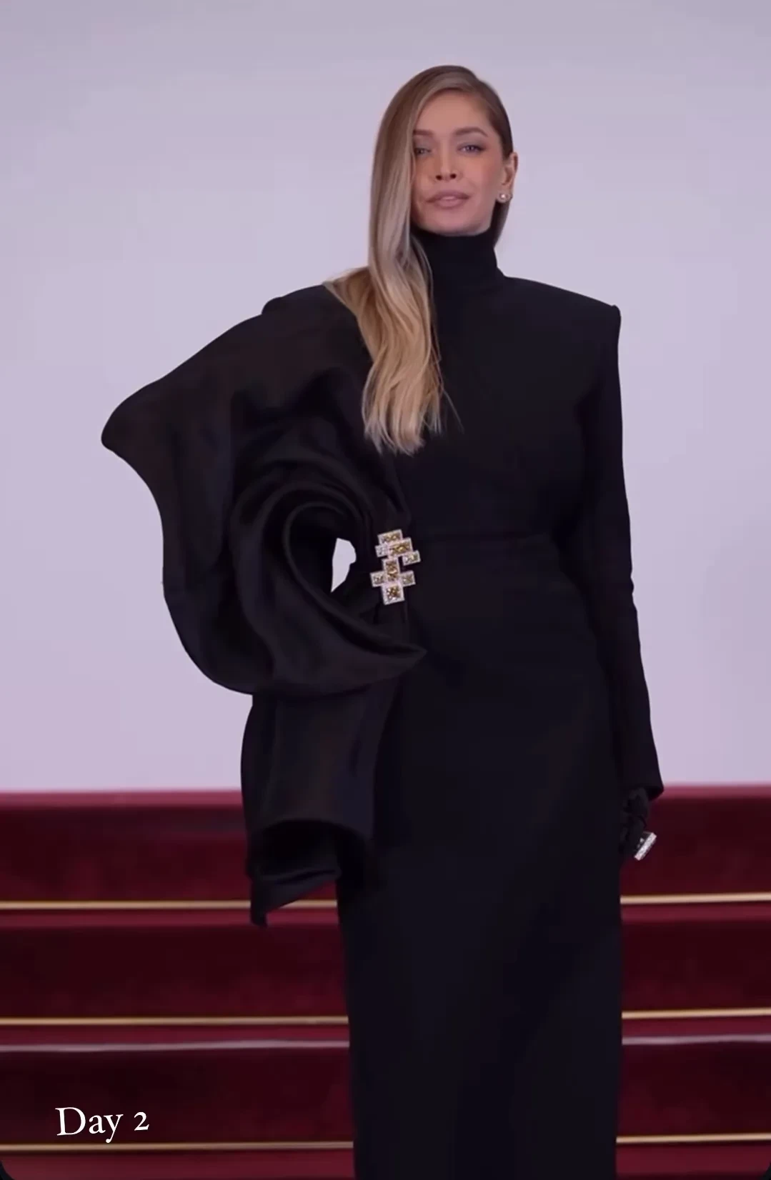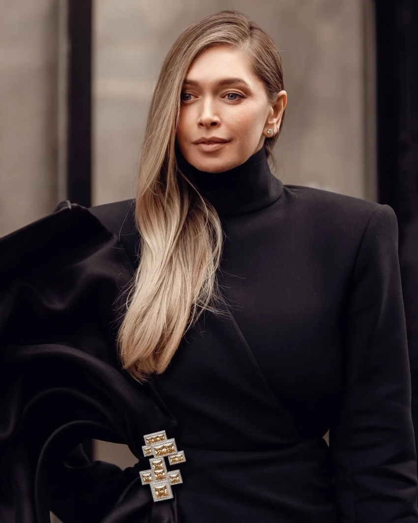 На мероприятии Вера Брежнева появилась в чёрном закрытом платье с необычной драпировкой и дополнила образ яркой брошью. Она не рассказывала в соцсетях о своих впечатлениях от Недели моды, а только опубликовала несколько снимков.