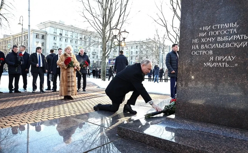 Сегодня, 19 февраля, в 25-ю годовщину смерти Анатолия Собчака президент России Владимир Путин встретился его вдовой Людмилой Нарусовой и дочерью Ксенией Собчак в Санкт-Петербурге: они возложил цветы к памятнику первому мэру города. На церемонии также присутствовали муж Собчак Константин Богомолов и её восьмилетний сын Платон.
