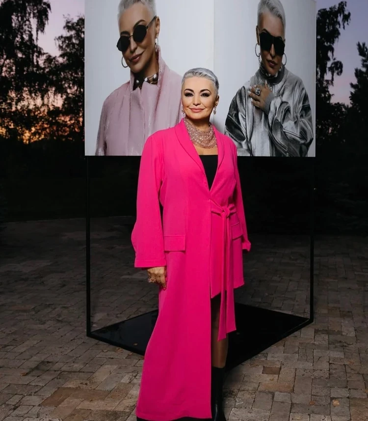 На одном из выступлений Катя появилась в ассиметричном наряде в оттенке фуксии. Платье-пиджак звезда дополнила грубыми ботинками на толстой подошве и необычным шейным украшением со стразами. В целом, розовый Лель идет и освежает ее. А вот прическу (не цвет) я бы поменяла. Не хватает длины.