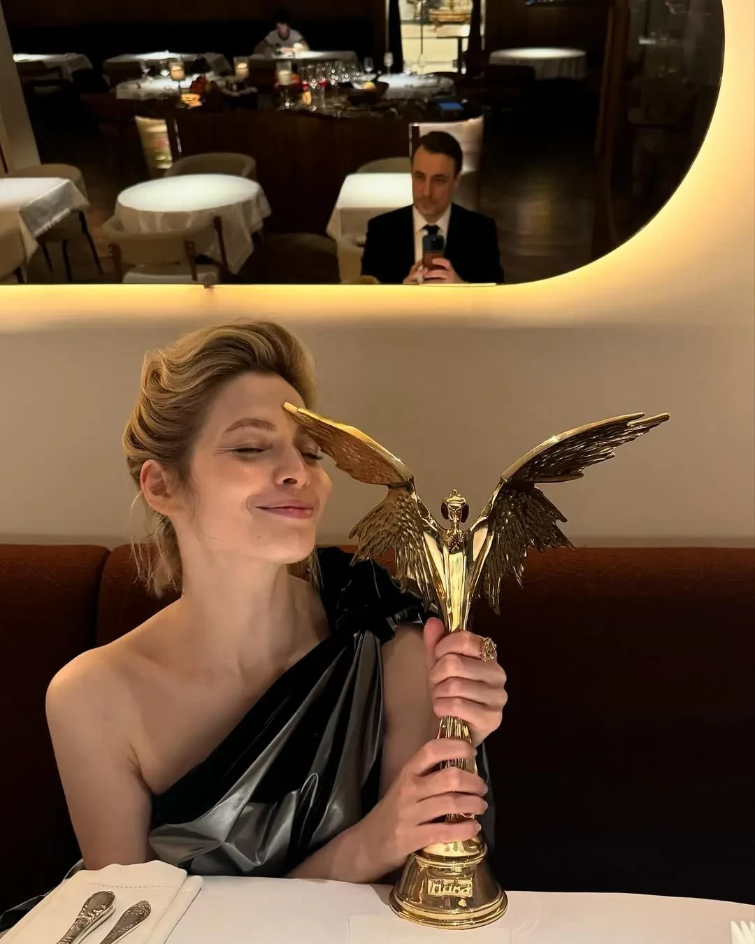 46-летний Цыганов разделил победу в номинации "Лучшая мужская роль" с Юрой Борисовым и, как и звезда "Аноры", посвятил награду супруге. Юлия, которая позировала на дорожке в чёрно-серебристом платье Viva Vox и туфлях Balenciaga, второй год подряд победила в номинации "Лучшая актриса" и передала свою статуэтку Марианне Шульц, отметив её игру в фильме "Эра". Всего фильм "Мастер и Маргарита" получил пять наград.