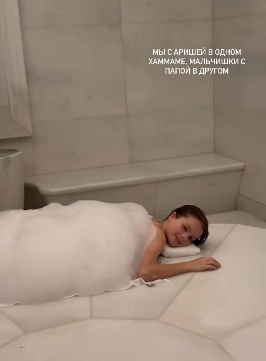 Перминова выложила в сторис* несколько семейных фото и видео с детьми из машины перед поездкой на экскурсию: за кадром слышен голос Лебедева. Она также опубликовала ролик их хаммама, который посетила с дочерью, и написала, что отец детей вместе с сыновьями находится неподалёку. "Мы с Аришей в одном хаммаме, мальчишки с папой в другом".
