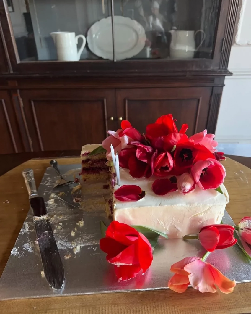 На фото Саша задувает свечи на праздничном торте вместе с мужем и трёхлетней дочерью, позирует в birthday-образе: бежевой юбке, рубашке в тон и с сумкой Chanel и отмечает дату на пикнике с друзьями. Блогерша также показала подарки от близких и букеты цветов с воздушными шарами.
