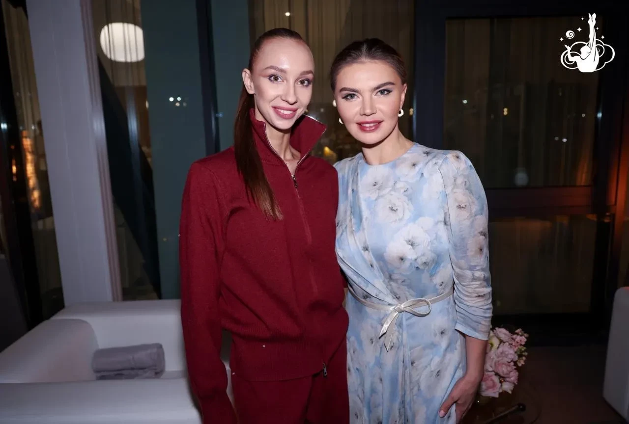 В один из дней 41-летняя Кабаева появилась на публике в ярко-красном брючном костюме. В другой раз она выбрала платье нежно-голубое платье с цветочным принтом. На одном из снимков экс-спортсменка позирует с сёстрами-фигуристками Диной и Ариной Авериными.