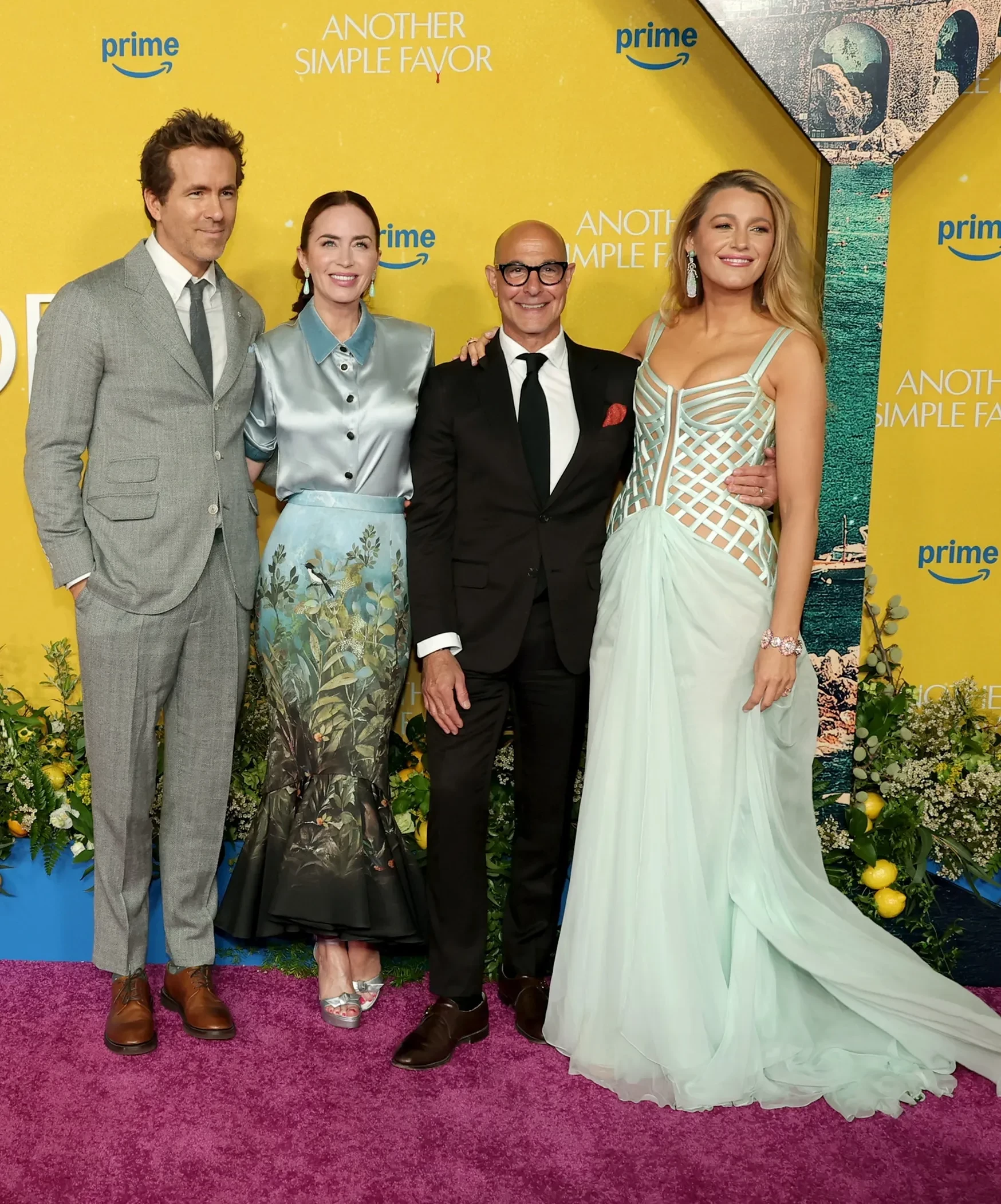 В Нью-Йорке прошла премьера фильма "Ещё одна простая просьба" — сиквела ленты "Простая просьба" Пола Фига. Картину представили исполнительницы главных ролей, 37-летняя Блейк Лайвли в мятном платье с корсетом в сетку Tamara Ralph и 39-летняя Анна Кендрик. Вместе со звездой "Сплетницы", появление которой на недавнем гала-вечере Time 100 публично раскритиковали, на дорожке позировал её 48-летний супруг Райан Рейнольдс, а также друзья Эмили Блант и Стэнли Туччи.