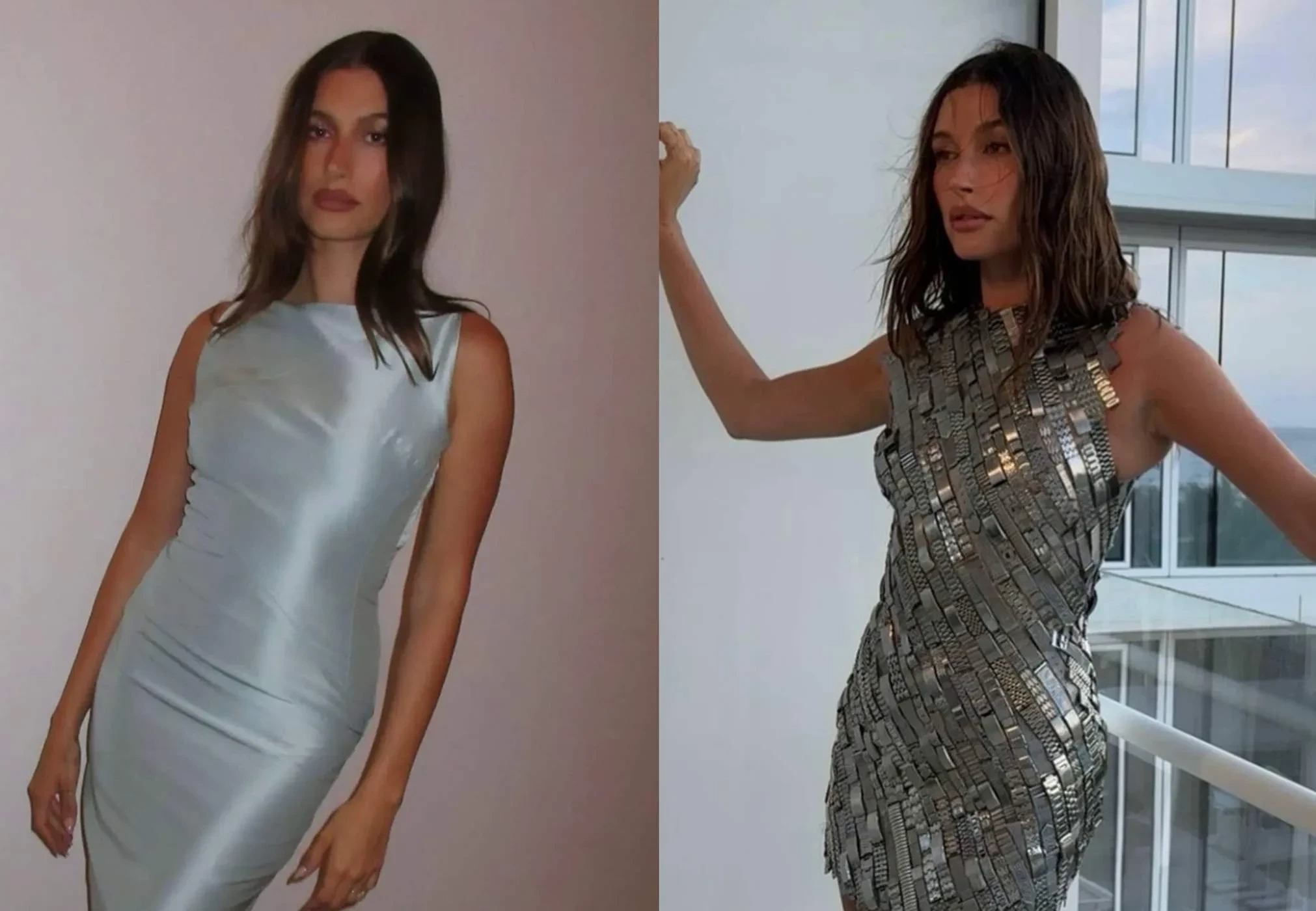 Хейли Бибер повторила образ Анны Винтур и примерила платье из 500 ремешков наручных часов