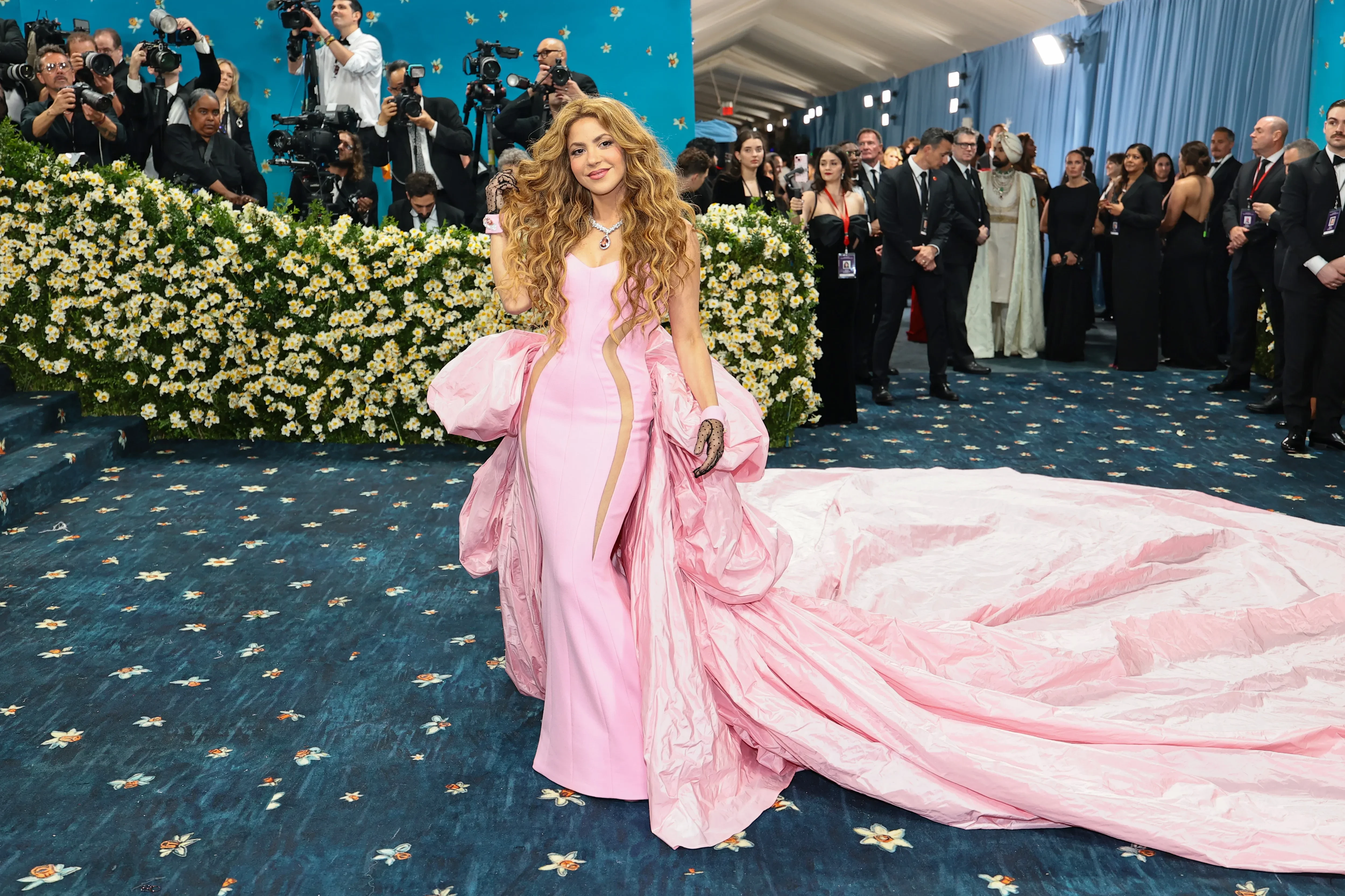 Амелия Грей в ValentinoАмелия Грей в ValentinoЛиззо в Christian SirianoЛиззо в Christian SirianoDoja Cat в Marc JacobsDoja Cat в Marc JacobsШакира и Майя Хоук появились на дорожке в розовых платьях, не имеющих ничего общего с темой мероприятия. Джорджина Родригес тоже решила не вникать в суть Бала и пришла в платье-комбинации Vetements. Образ total black Дуа Липы в этом году, к сожалению, не особо отличается от её прошлогоднего выхода. Модель Прешес Ли тем временем показала самый неудачный образ на дорожке, появившись в блестящем облегающем комбинезоне и леопардовой накидке.