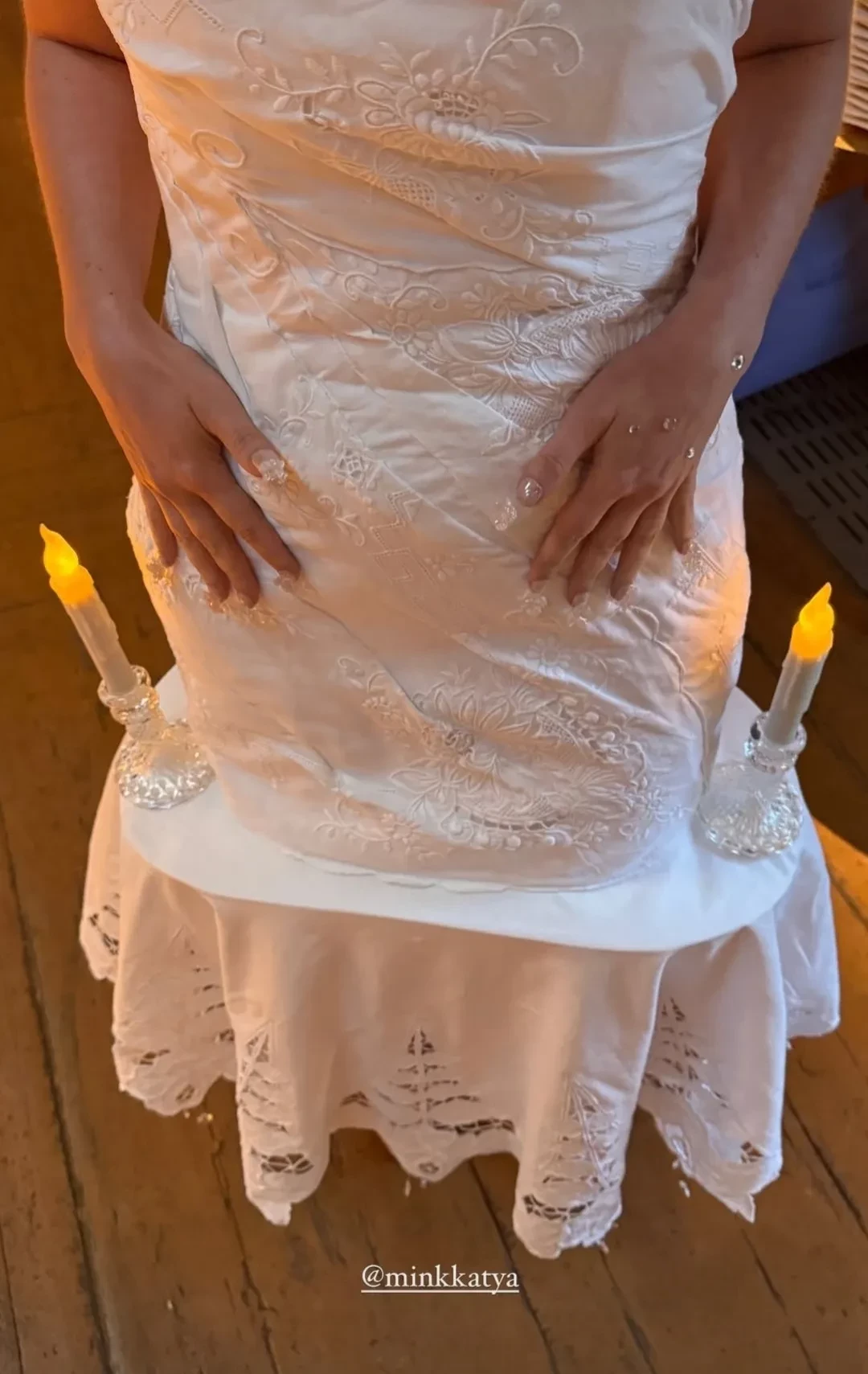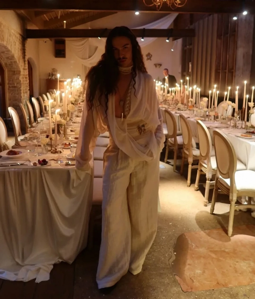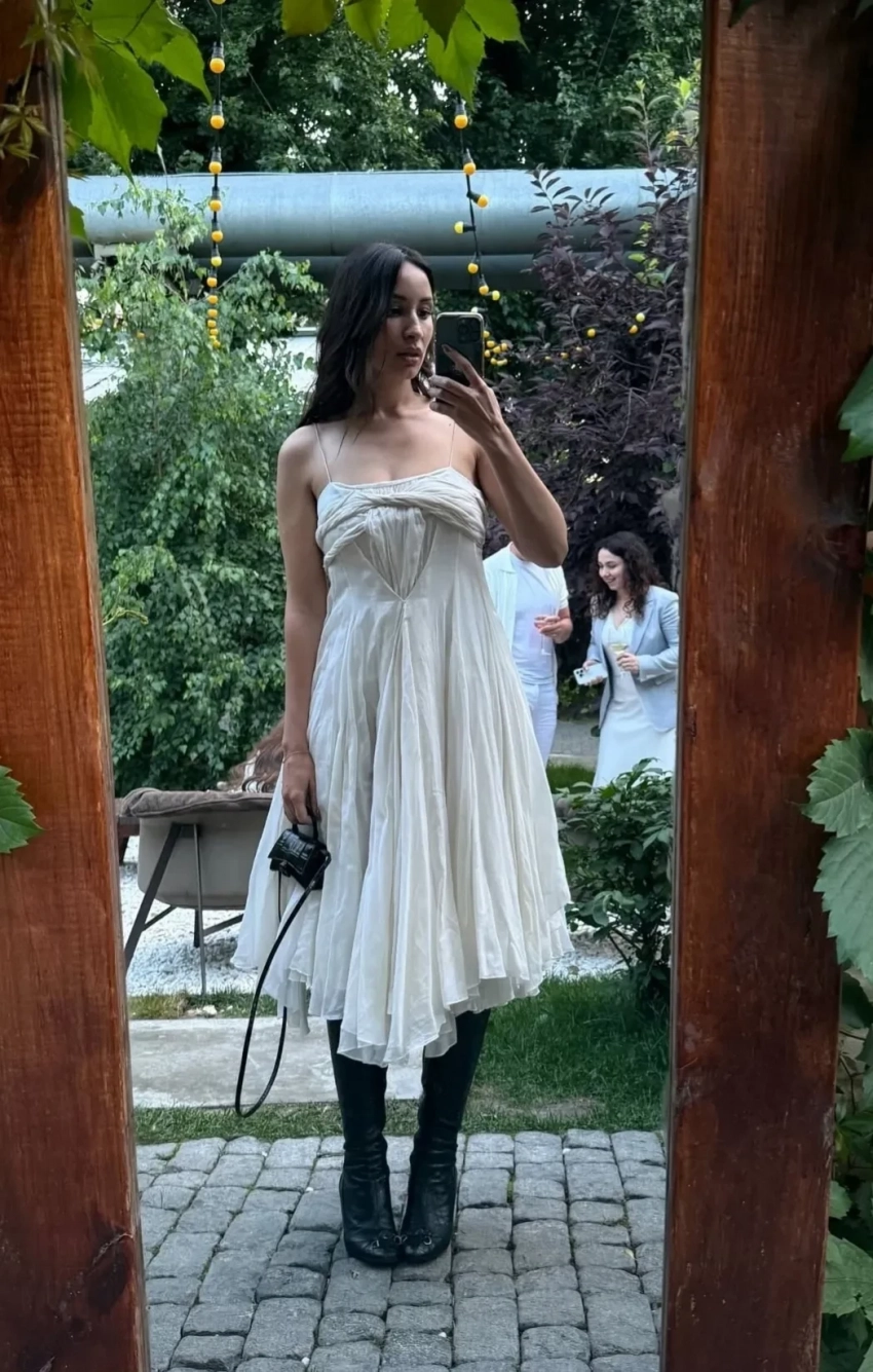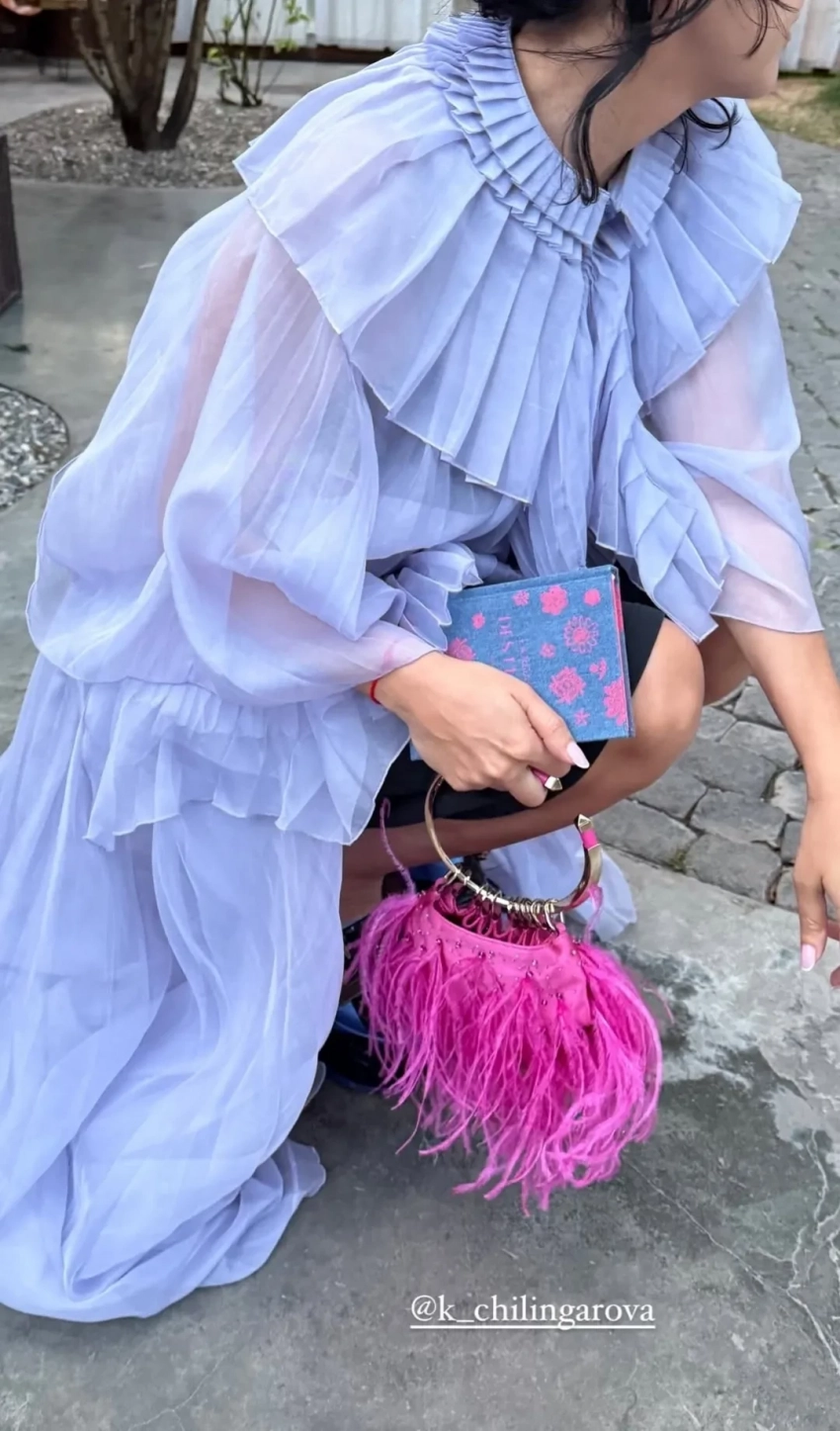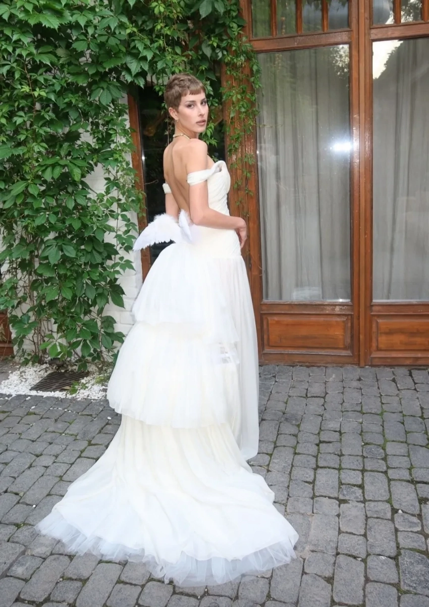 https://t.me/spletnik2006/34156Все гости были одеты соответственно дресс-коду вечера, темой которого были "Ангелы Ренессанса". Повсюду можно было увидеть белые платья с рюшами и кружевами, накладные крылья, корсеты и перья. Даже питомцев их хозяева нарядили в белое. Что касается именинницы, что она выбрала для вечера платье Ильи Migmoon, стилизованное Ксюшей Смо.