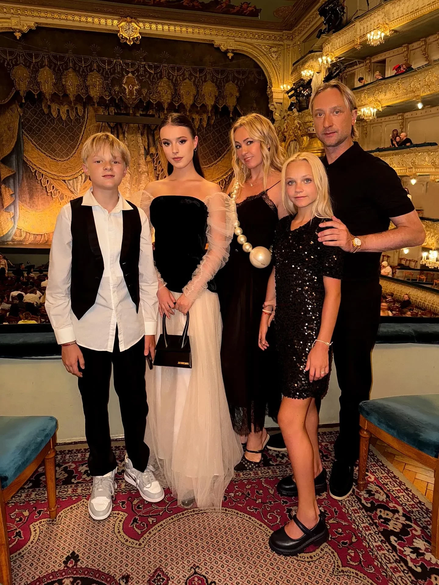 Яна Рудковская посетила Мариинский театр вместе с семьёй и фигуристками Анной Щербаковой и Еленой Костылевой