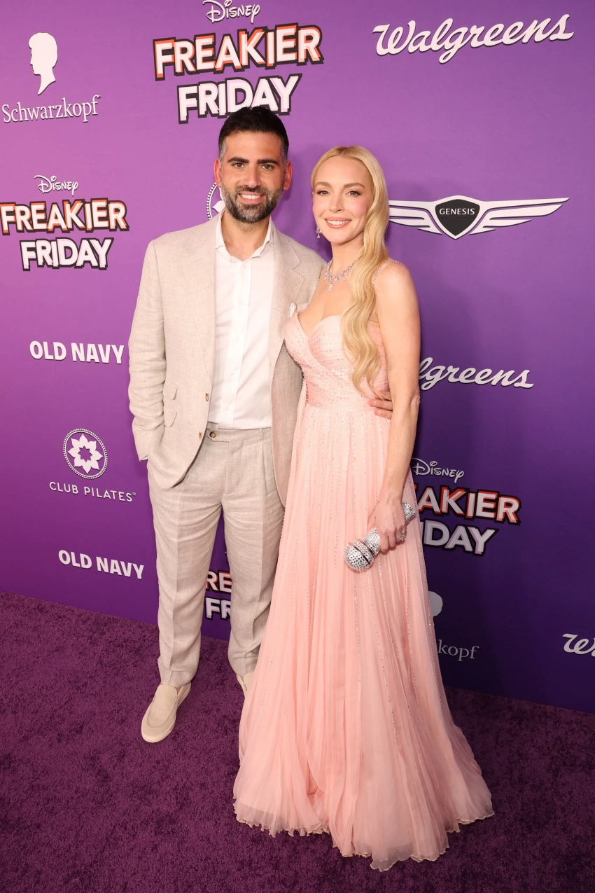 39-летняя Лохан, "камбэк" которой в шоу-бизнес сейчас обсуждают в СМИ, появилась перед камерами с мужем, финансистом арабского происхождения Бадером Шаммасом (напомним, на днях пара отметила двухлетие своего сына). Премьеру также посетила 53-летняя Кармен Электра.