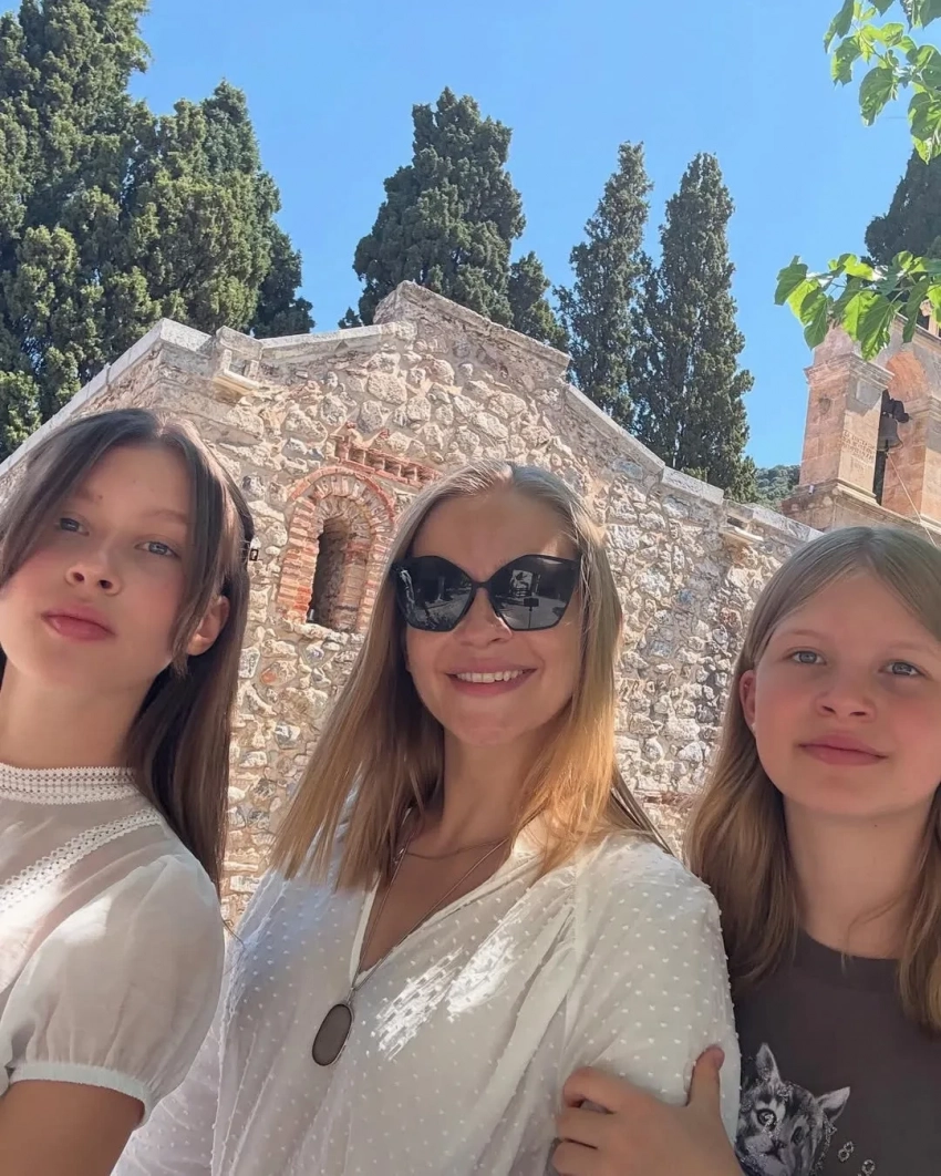 Монастыри и фотосессия с декольте: как Юлия Пересильд отдыхает на Крите с дочерьми от Алексея Учителя