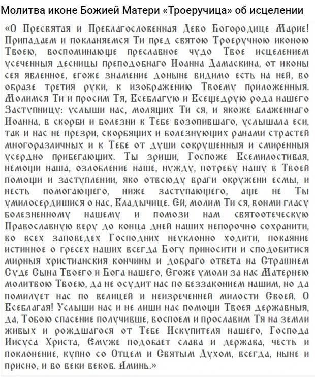 Вдохновленный этим событием, Иоанн создал фигурку ладони из серебра и прикрепил к иконе, перед которой молился. Так возникла икона Троеручица, изображающая Богородицу с тремя руками, символ чудесного исцеления.