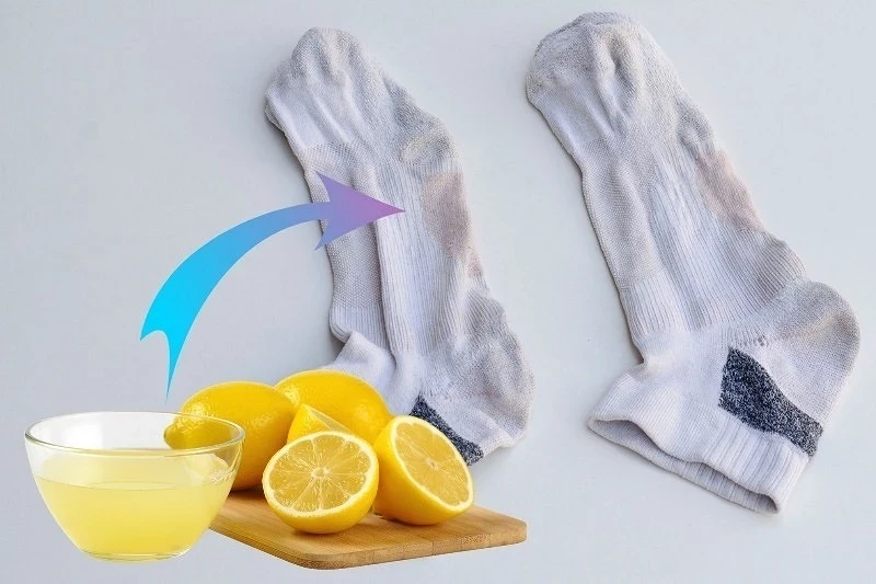 Замачивание: погрузите носки в лимонный раствор на 1–2 часа. Натуральные кислоты эффективно растворяют пятна и устраняют серый налет.