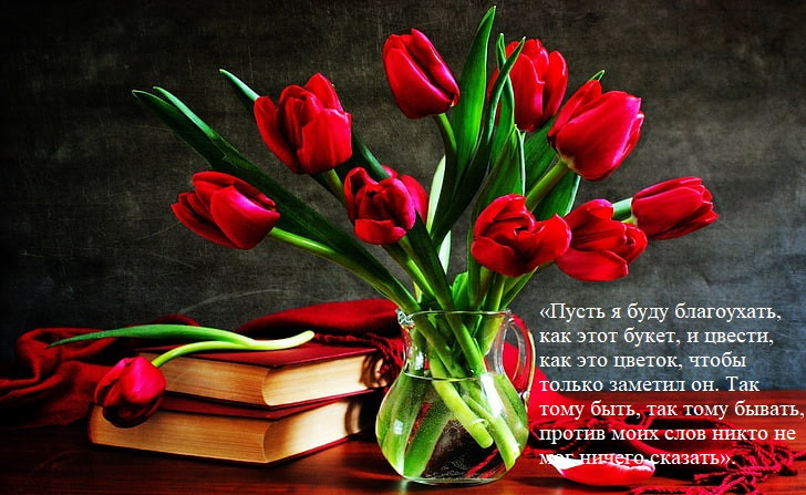 Поставьте цветы в вазу с водой и убедитесь, что вас никто не подсматривает. Смотря на букет, прочтите заговор, нарисуйте взглядом в воздухе над букетом восьмерку, сделайте это трижды. Пусть тюльпаны стоят в вашей комнате еще 7 дней.
