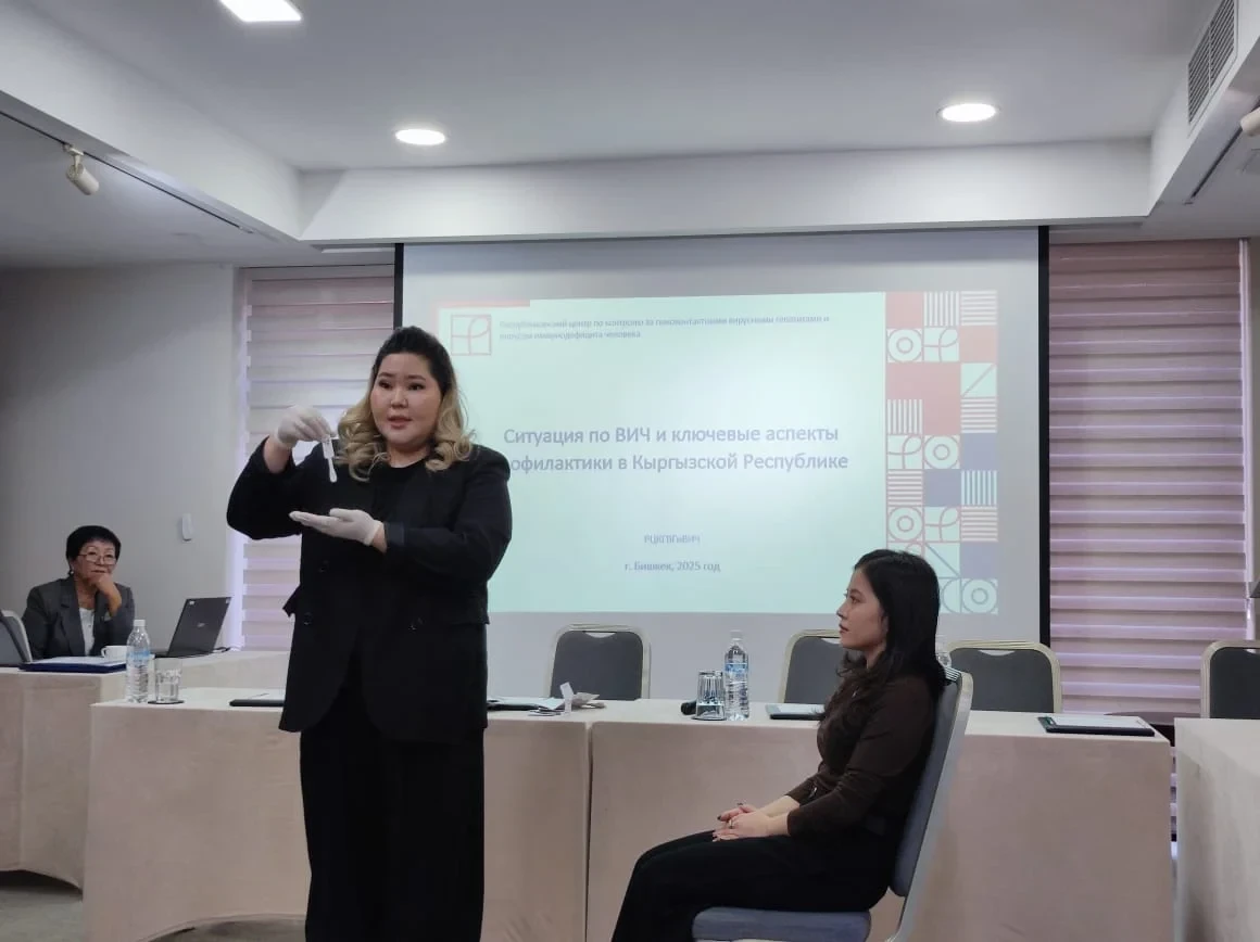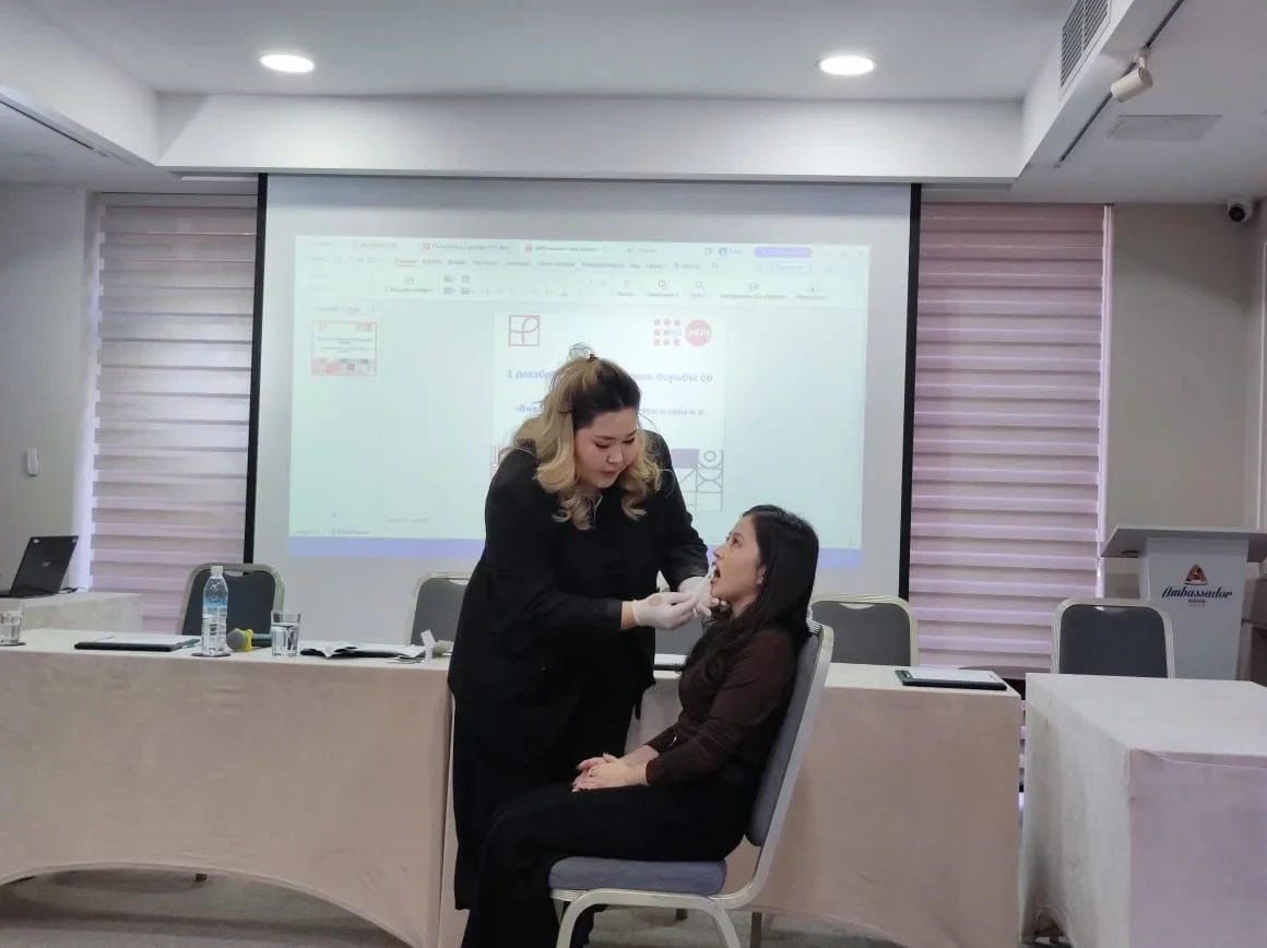 Специалист по эпидемиологии из Республиканского центра по контролю за ВИЧ и вирусными гепатитами, Каныкей Кыдыкбаева, поделилась информацией о методике выполнения экспресс-теста на ВИЧ, который можно проводить с использованием околодесневой жидкости.