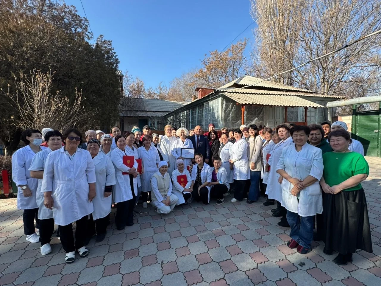 В завершение мероприятий, заместитель министра Рыспек Сулкайдаров передал тёплые поздравления и слова поддержки коллективу и детям Республиканского специализированного центра реабилитации детей и семьи с поражением центральной нервной системы и нарушением психики в городе Токмок. Детям были вручены новогодние подарки, а сотрудникам - премии и почетные грамоты Министерства здравоохранения Кыргызской Республики. Также учреждение получило сертификат на сумму 200 тысяч сомов в поддержку своей деятельности.