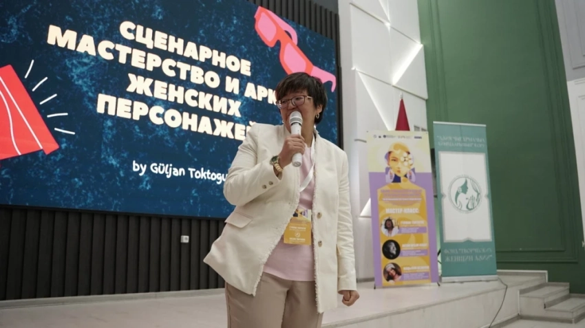 Завершился первый день форума мастер-классом по драматургии от Гульжан Токтогул, молодой сценаристки и выпускницы Американского института киноискусства (AFI). Она рассказала о создании сценариев, особенностях женских образов в кино и основах сильной драматургии.