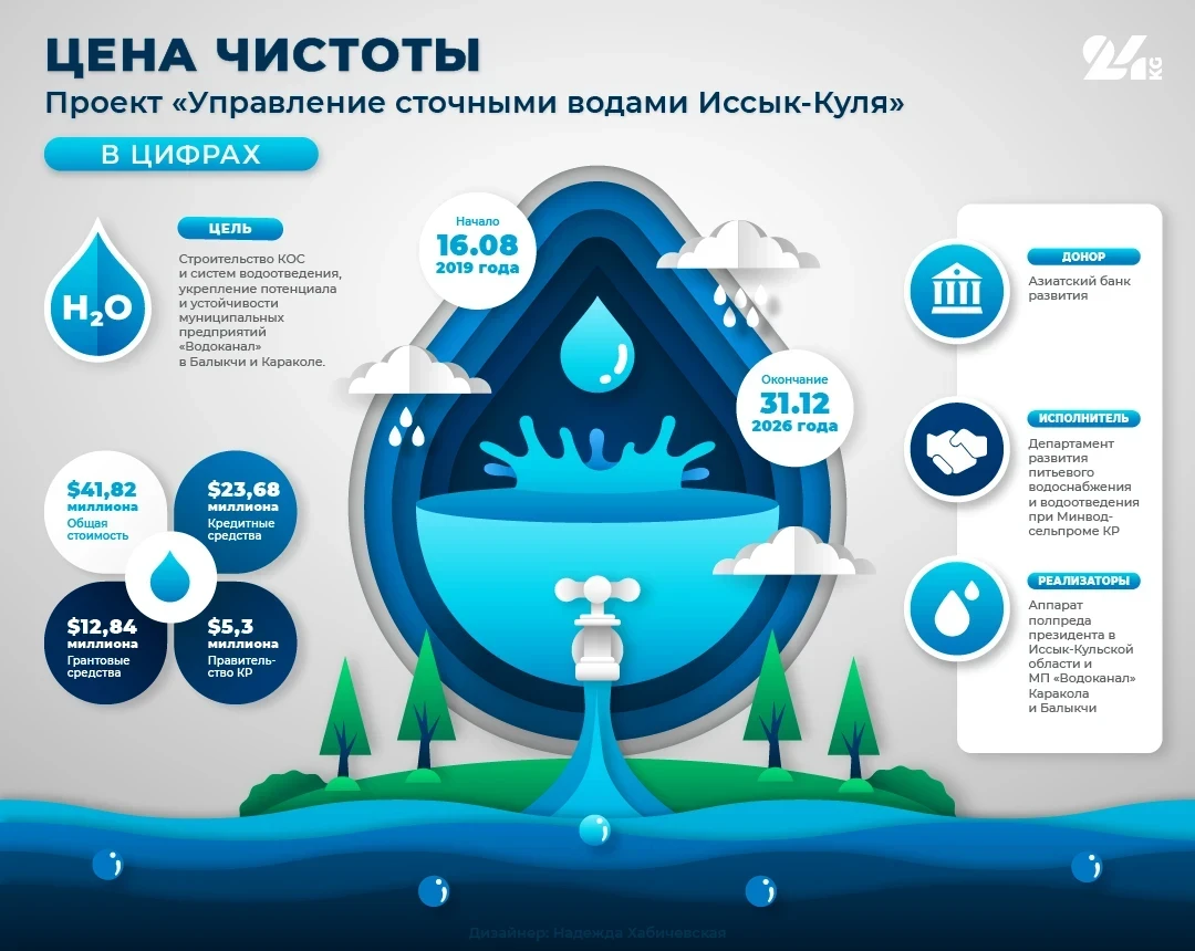 Согласно словам Сабырбека Омурканова, руководителя проекта, новые очистные сооружения в Балыкчи завершены и находятся на годовом обслуживании у подрядчика, после чего их передадут муниципальному предприятию «Водоканал».
