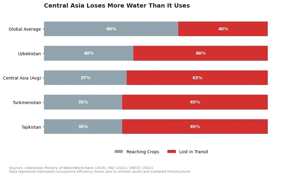 Анализ показывает, что хотя еще не достигнут уровень катастрофы, движение в этом направлении очевидно. Основные факторы, способствующие кризису, включают таяние ледников, устаревшую инфраструктуру и чрезмерное потребление воды, особенно в сельском хозяйстве, где до 90% водных ресурсов уходит на орошение. В некоторых случаях до 40% воды теряется в открытых каналах до того, как достигает полей.