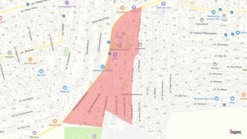 Зоны, где будет прекращена подача воды: улицы Селекционная, Муромская, Биримдик и Жайыл Баатыра.