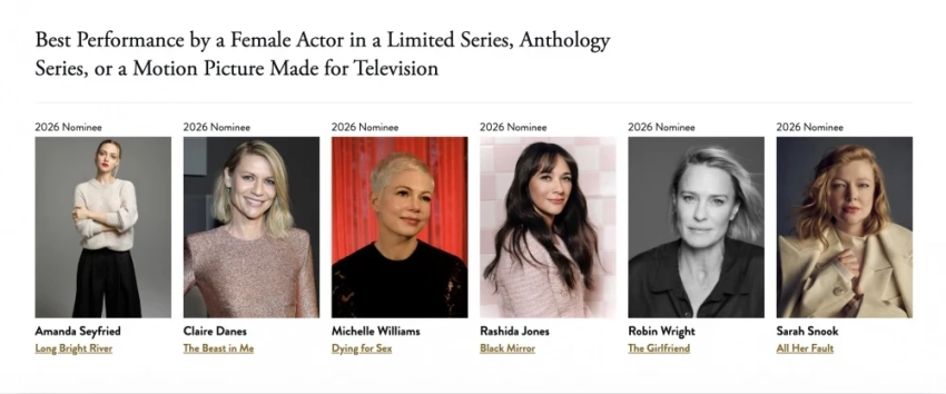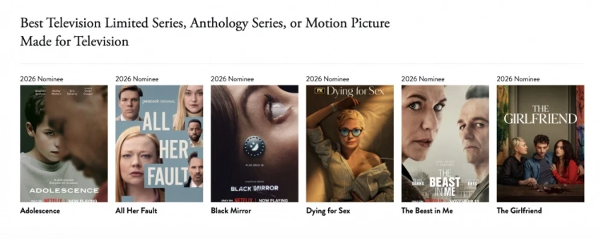 Организаторы престижной и давней американской премии за достижения в телевидении и кино "Золотой глобус" обнародовали список номинантов на 2026 год. В этом году они решили расширить номинации, включая подкасты и сохранив категории, введенные ранее для стендап-комедии и кассовых фильмов.