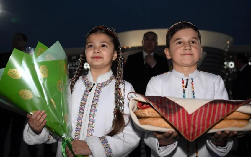 Самолет, на котором путешествовал президент, приземлился в международном аэропорту Ашхабада, где для его встречи были установлены флаги стран-участниц форума, разостлана ковровая дорожка и выстроена рота почетного караула.