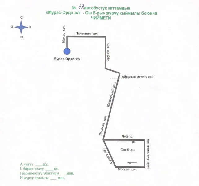 В столице Кыргызстана, Бишкеке, стартовал новый автобусный маршрут под номером 43. Он будет соединять жилмассив «Мурас-Ордо» с Ошским рынком, как сообщает пресс-служба мэрии.