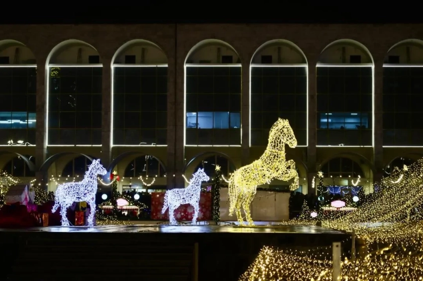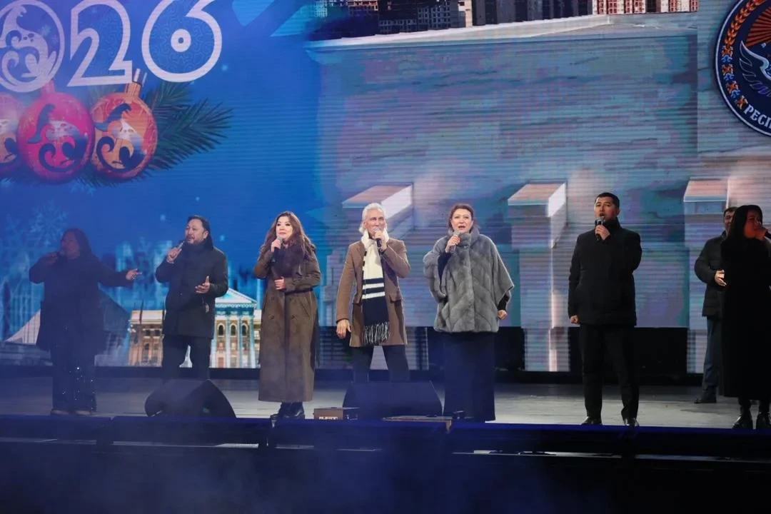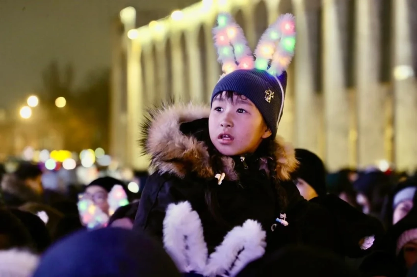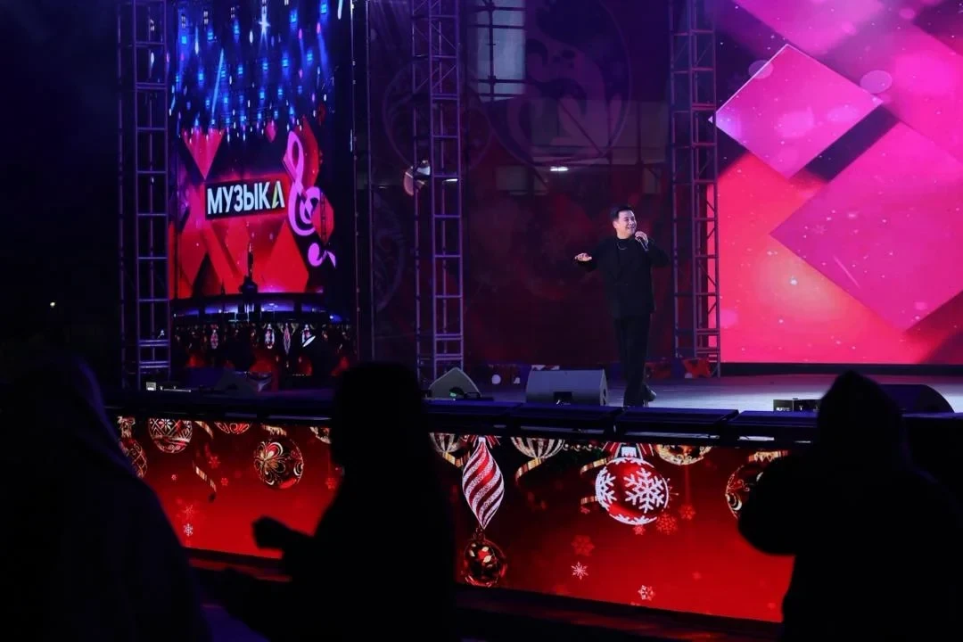 На площади Ала-Тоо в Бишкеке зажгли главную новогоднюю елку страны