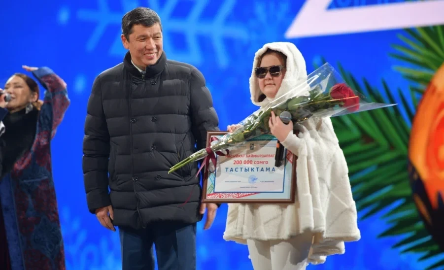 Церемония вручения сертификата прошла во время празднования зажжения главной елки страны на площади Ала-Тоо.