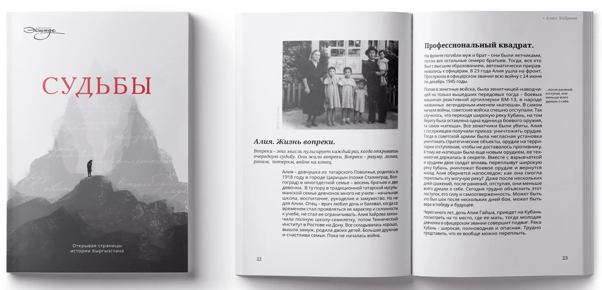 Эльмира Ногойбаева, представляющая исследовательскую площадку «Эсимде», отметила в интервью с 24.kg, что это одна из первых публикаций серии «Судьбы». Книга была выпущена на кыргызском и русском языках, а её английская версия появилась благодаря поддержке исследователя из Европы в прошлом году. Именно именно английский вариант и оказался в числе лучших книг по версии 98mag.