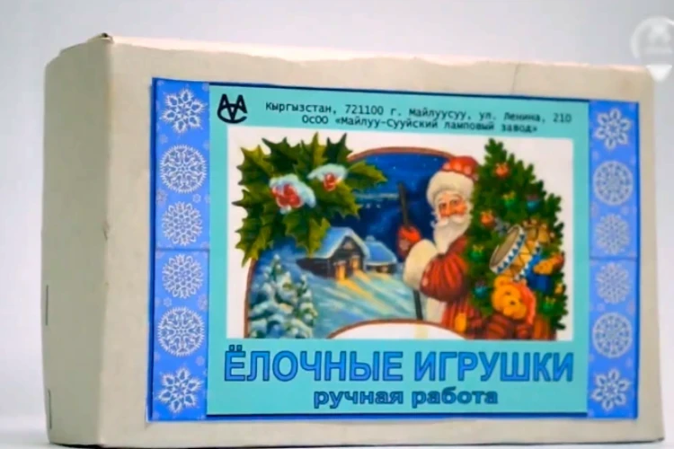 Майлуу-Суйский ламповый завод в последние годы начал выпускать елочные игрушки ручной работы, каждая из которых расписывается вручную. На шарах изображены мотивы советских новогодних открыток.