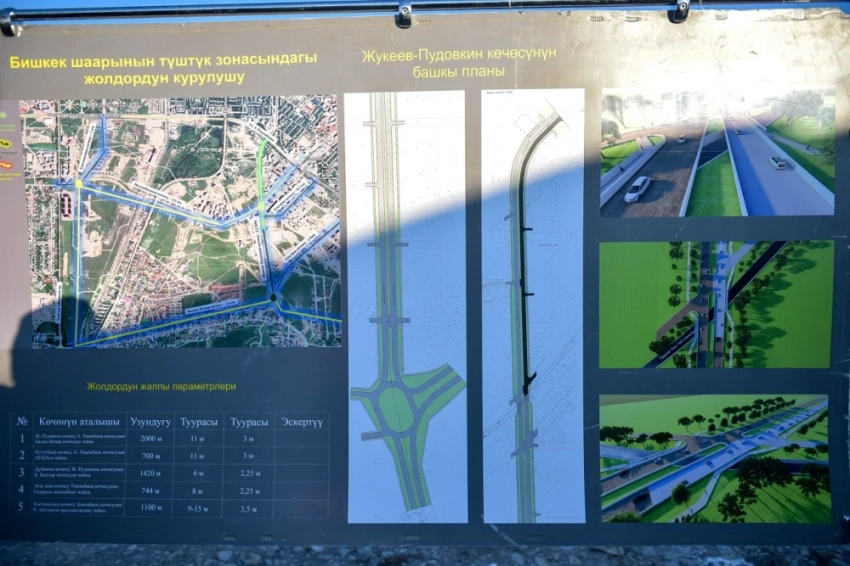 Чиновники, включая Айбека Джунушалиева, были проинформированы о ходе строительства участка улицы Жукеева-Пудовкина от А. Токомбаева до Иманалиева. В работах задействовано около 100 единиц специализированной техники.