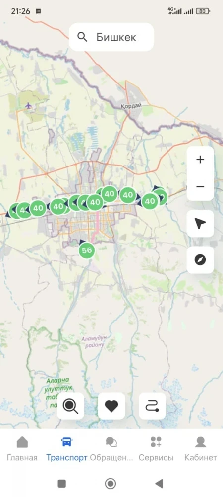 - Жители, пользующиеся автобусом №56 по улице Салиевой через Лебединовку в микрорайон "Аламедин-1", также столкнулись с проблемами: в вечернее время автобус практически не ходит после 20:00. В то же время на маршруте №40 курсирует более 20 автобусов.Жалобы на нехватку общественного транспорта.