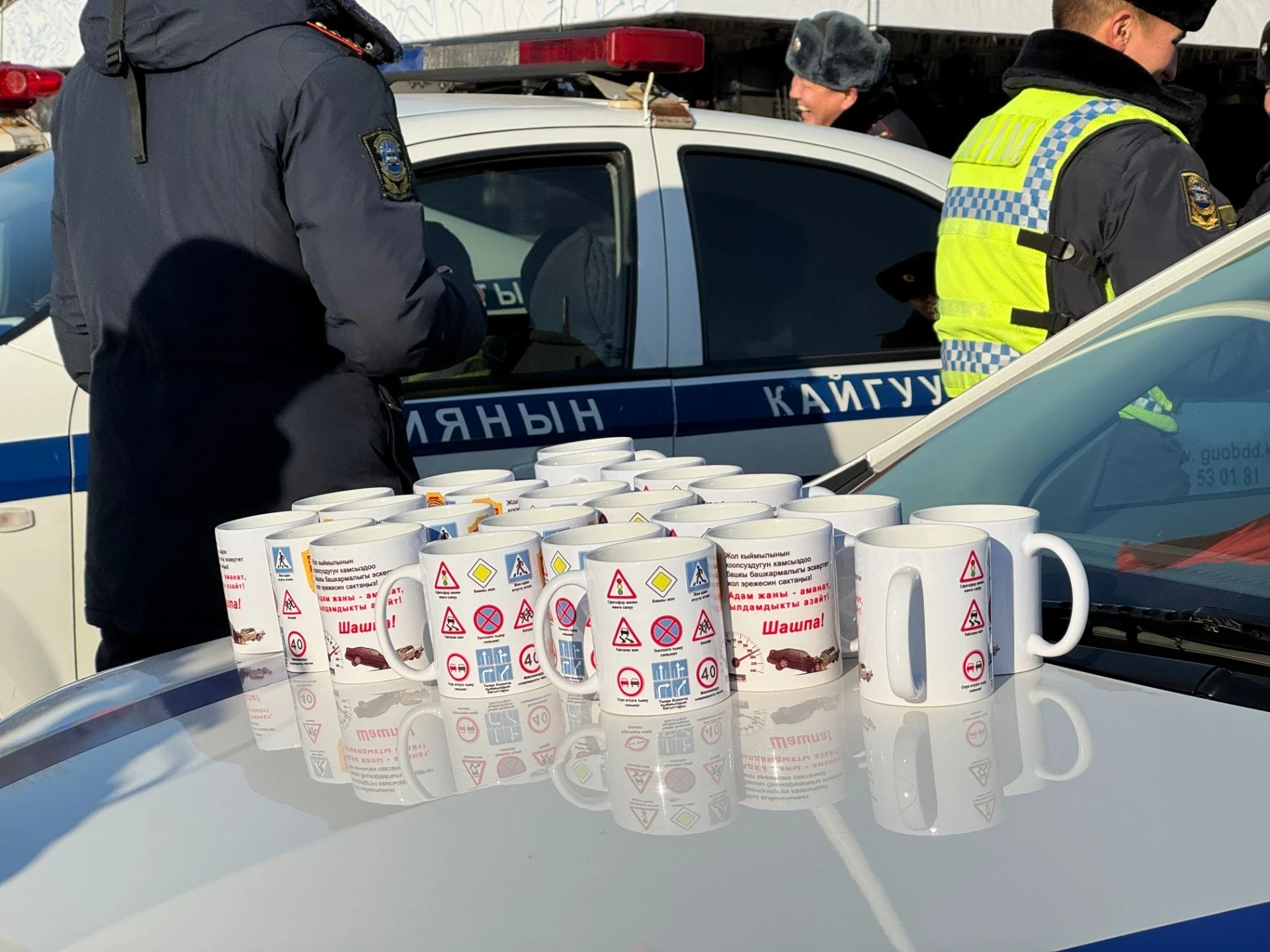 Участники акции получили в подарок сладости, книги с правилами дорожного движения и тематические кружки, напоминающие о важности соблюдения ПДД.
