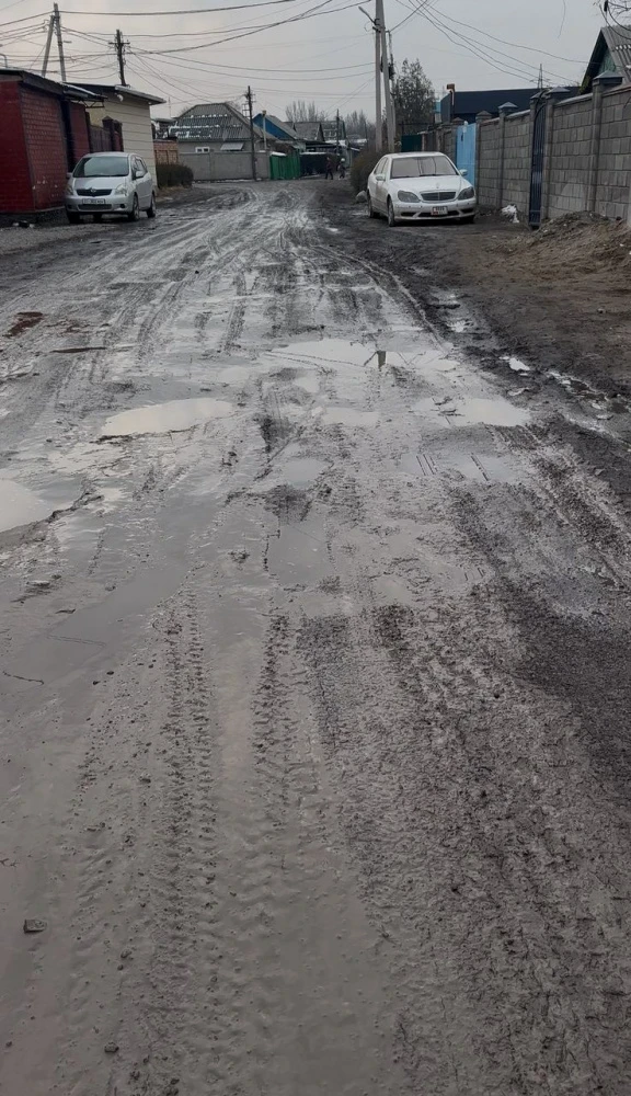 Жители также отмечают, что после дождей они вынуждены передвигаться по слякоти из-за отсутствия асфальтного покрытия.