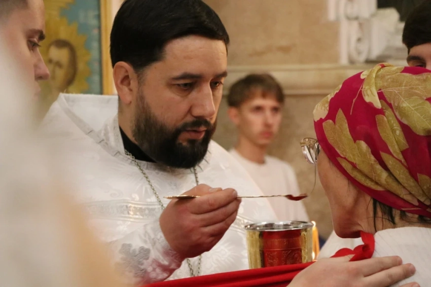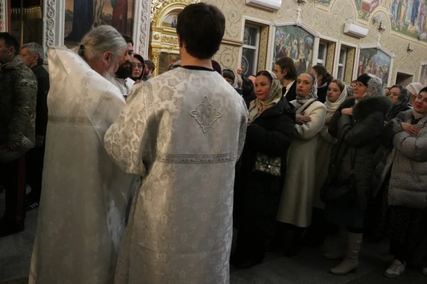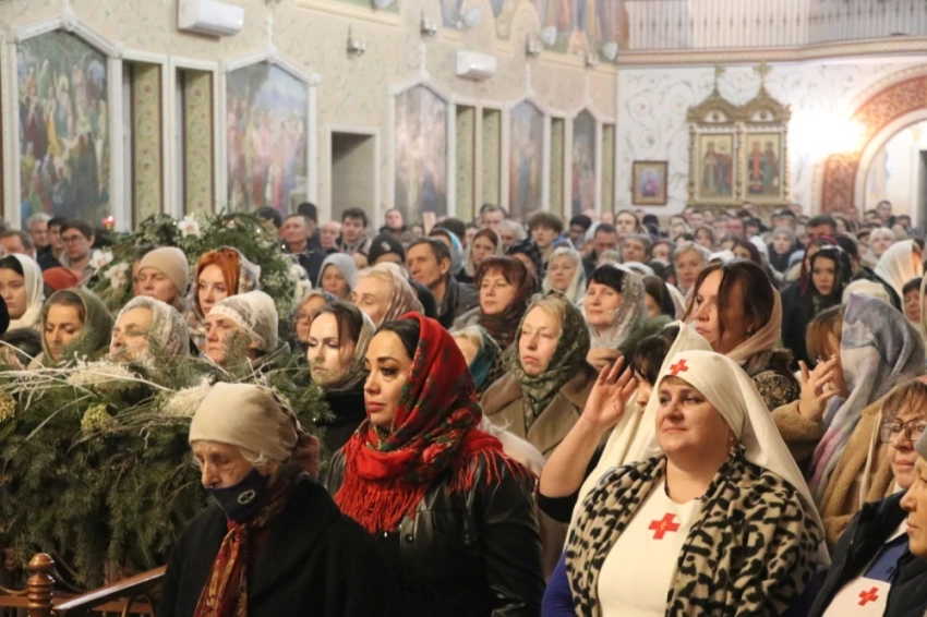 На запричастном стихе иерей Георгий Дворовой зачитал Рождественское послание, адресованное верующим Русской православной церкви, от Патриарха Кирилла Московского и всея Руси.